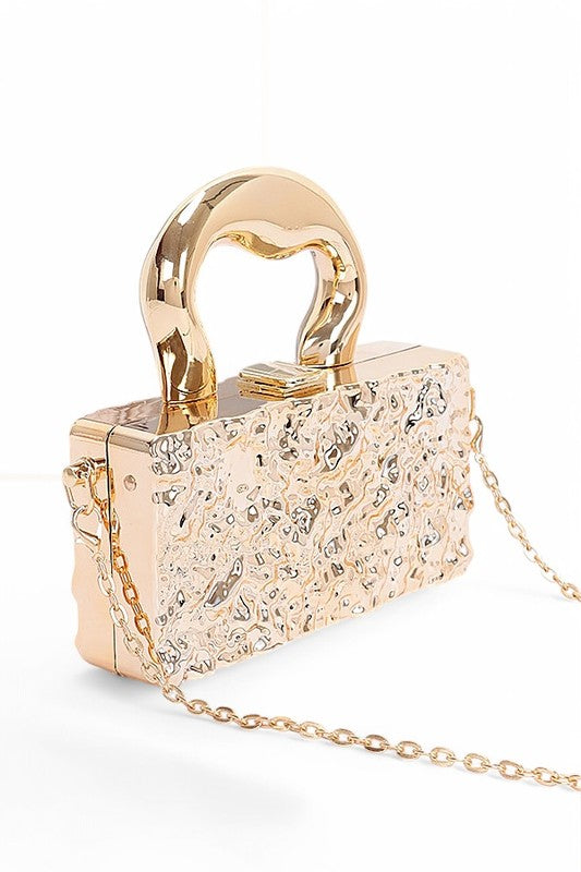 Mini Textured Heart Shape Box Clutch Swing Bag