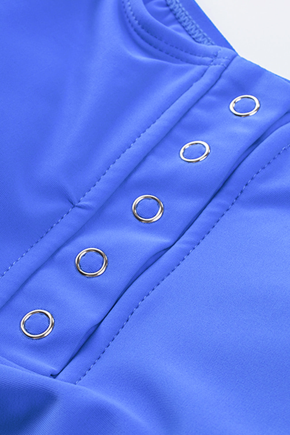 - Featured in the front snap button closure