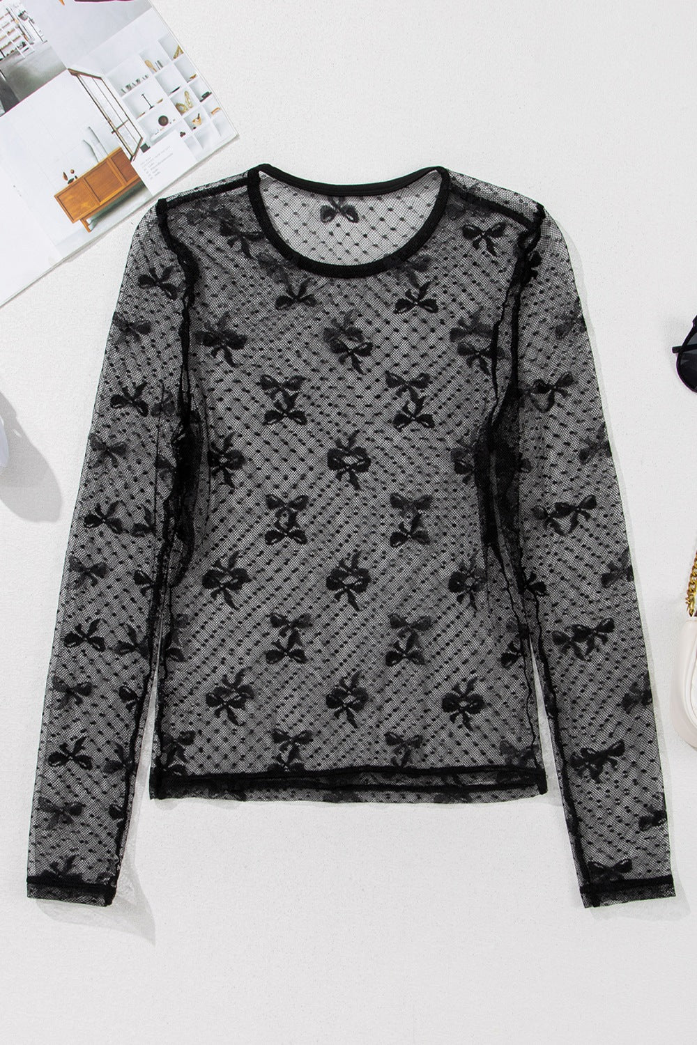 Bow Round Neck Sheer Top