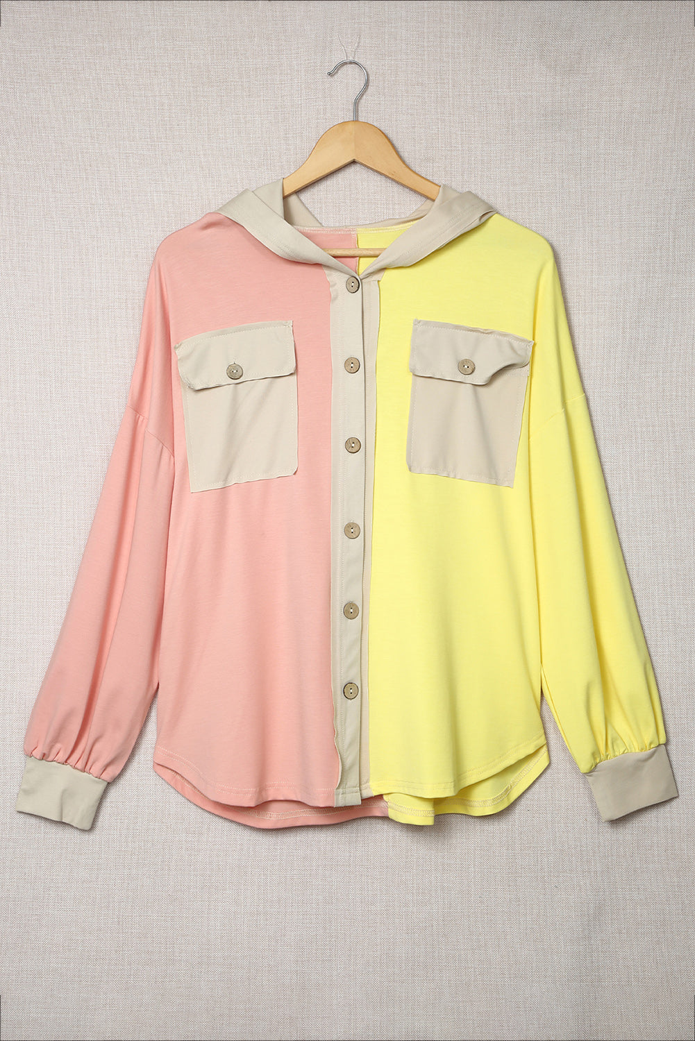 Color Block Button Down Hooded Shirt Jacket
