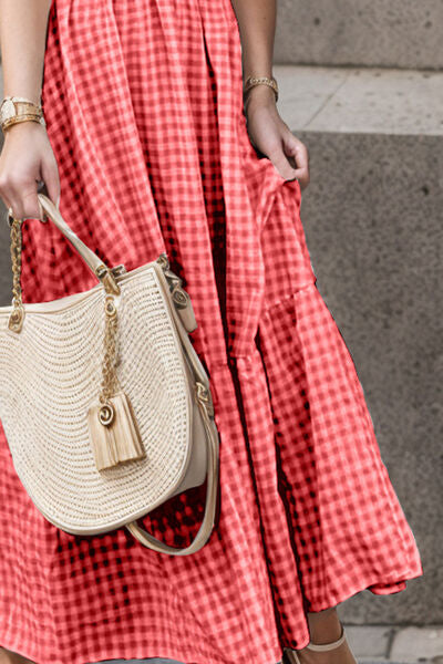 Full Size Smocked Ruffled Plaid Ruffle Hem Dress