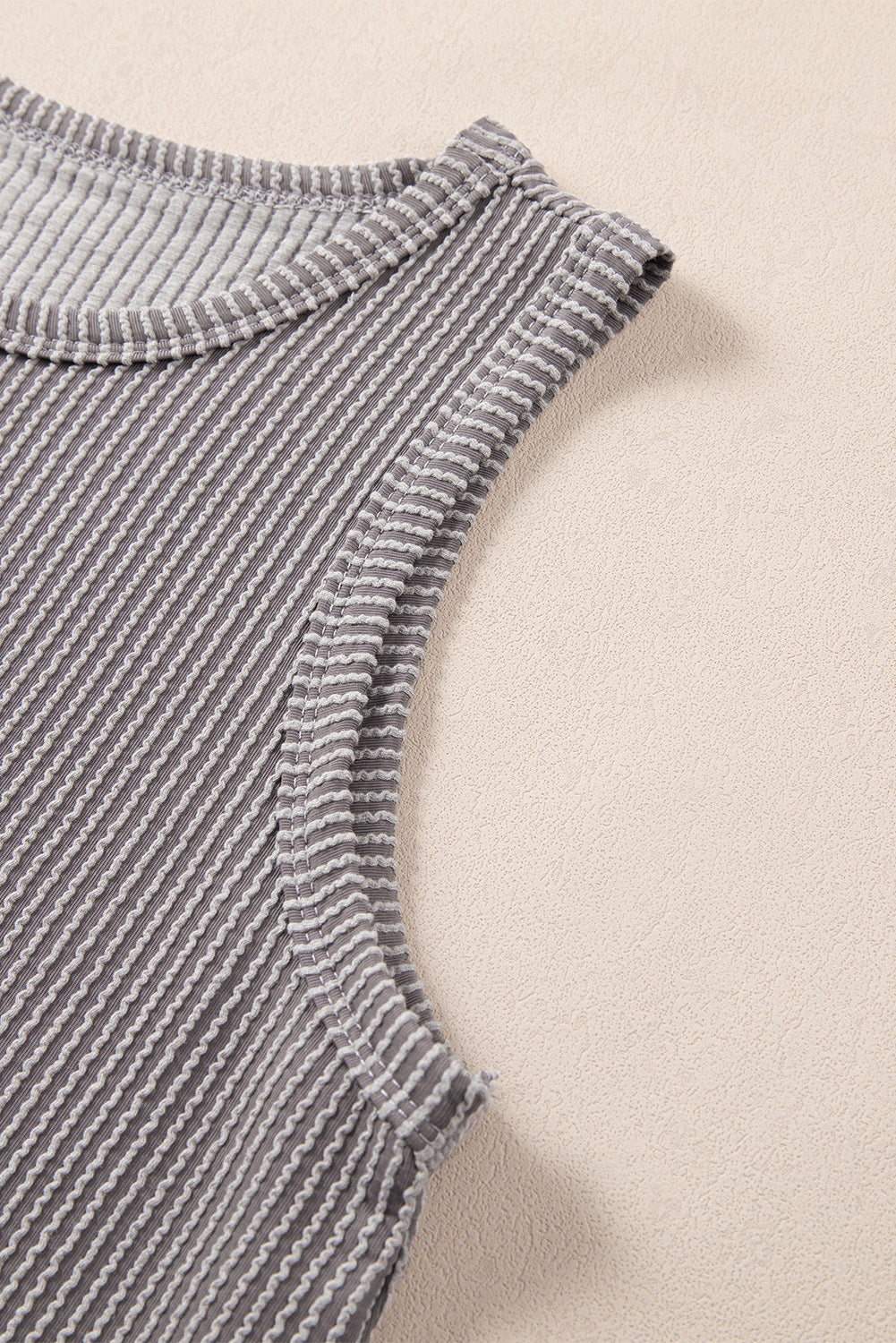 Smoke Gray Corded Sleeveless Top and Pocketed Shorts Set