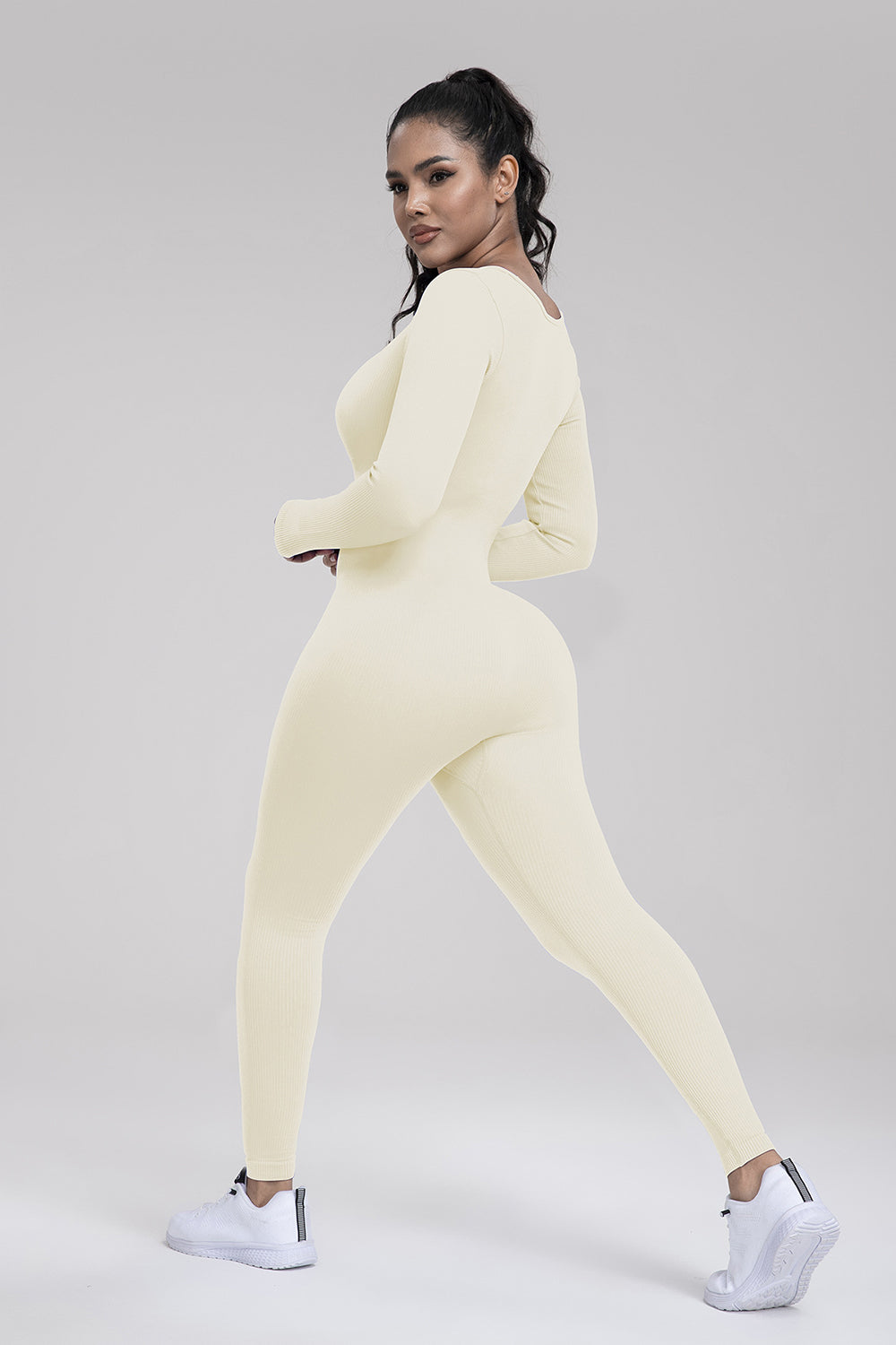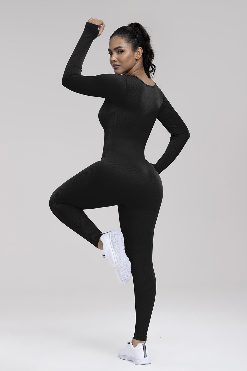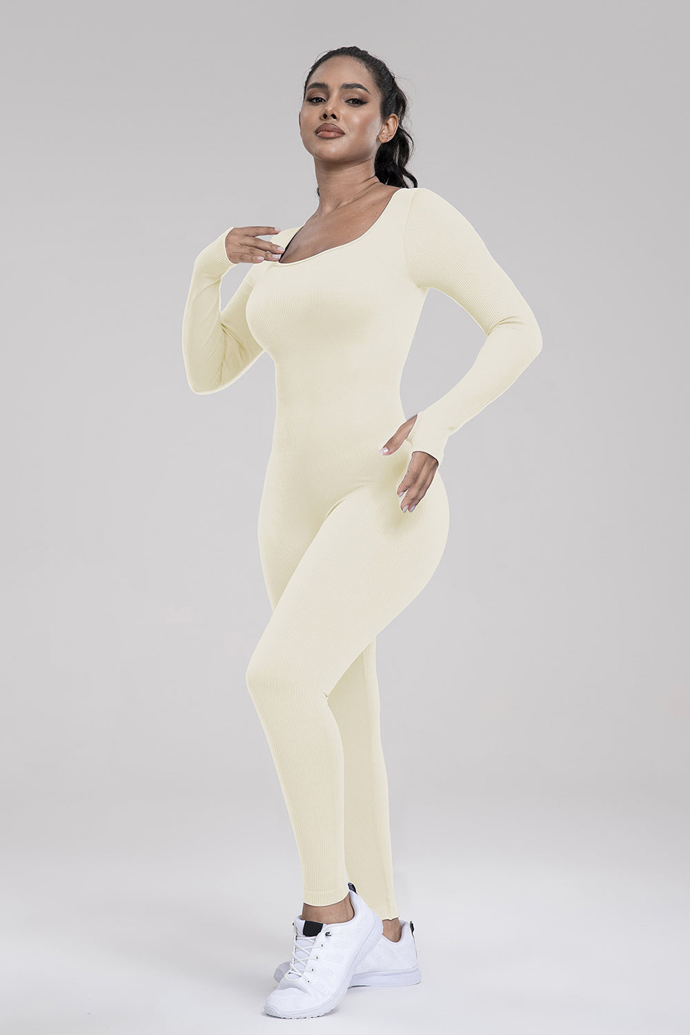 Square Neck Long Sleeve Active Jumpsuit